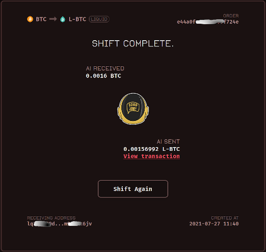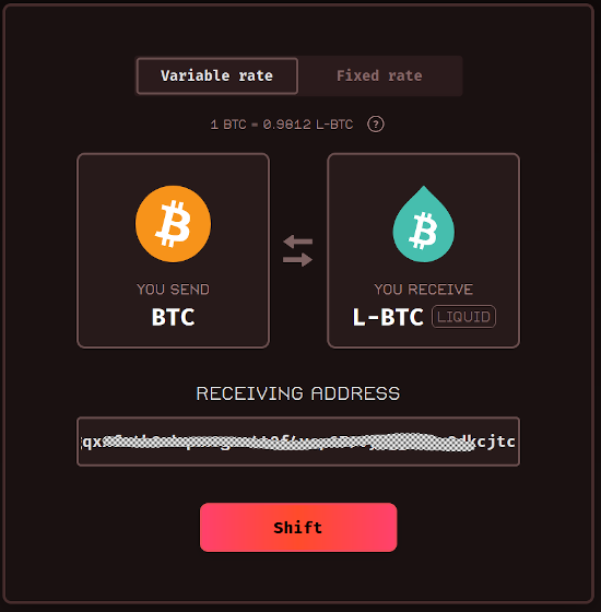 As an example, let'S choose sideshift.ai to swap some BTC to LBTC.